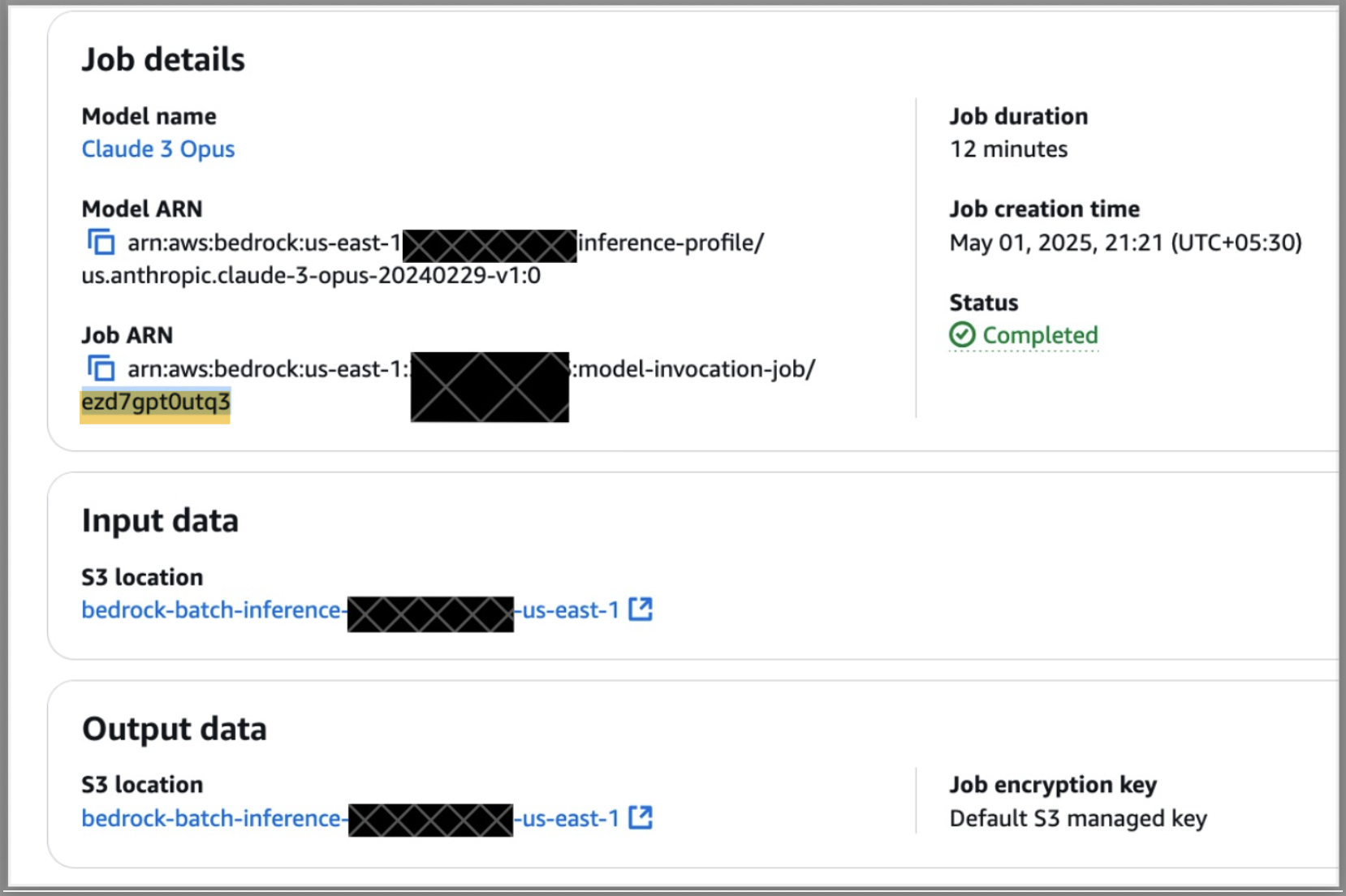 1. On the Amazon Bedrock console, open the completed batch inference job.