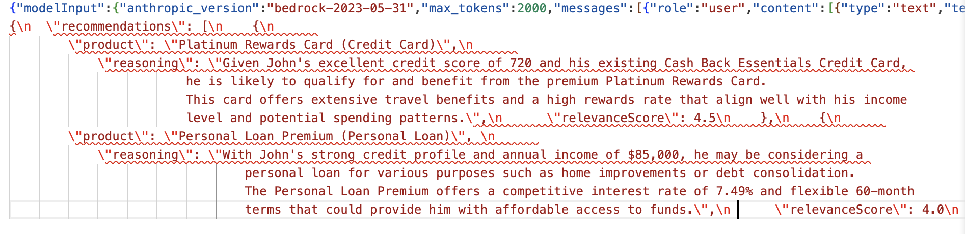 4. In the prompt template, the FM is given a role of expert in recommendation systems within the financial services industry. This way, the model understands the customer and their credit information to intelligently recommend most suitable products.