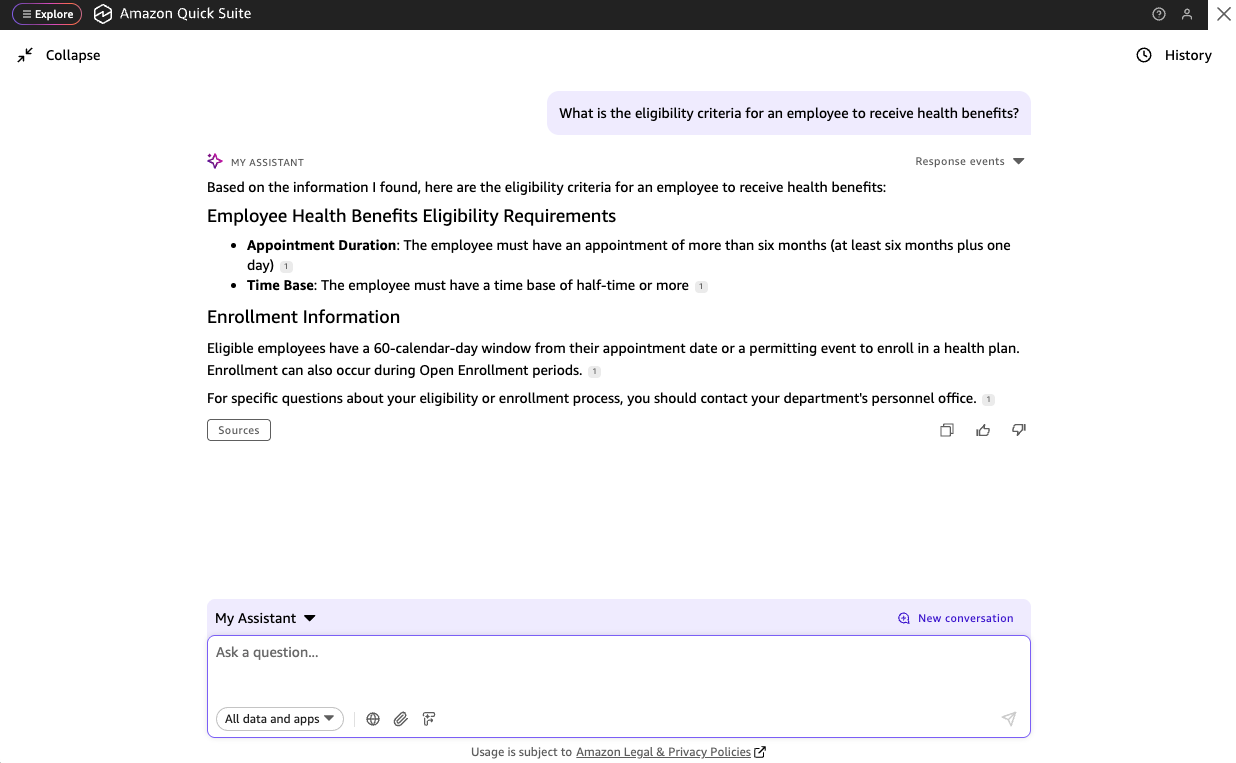 - To start, invoke an OpenAI-powered HR agent using the following prompt. You will get the employee eligibility criteria in response from the HR agent: