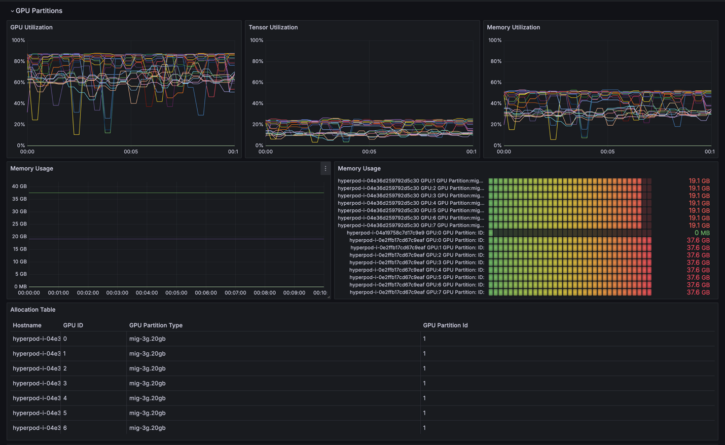 - Real-time monitoring of GPU utilization per MIG partition