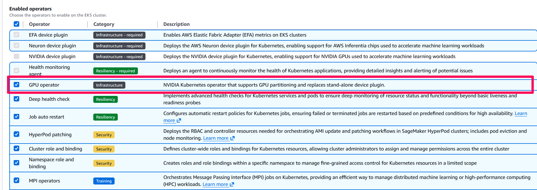 - Simplified set up management: Remove the complexity of scaling GPU partitions with simple-to-use setup across SageMaker HyperPod capabilities.