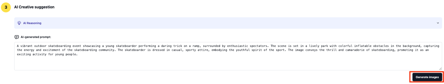 - In the final step, our system generates visual assets based on the prompt that could potentially be used as inspiration for a complete campaign briefing.