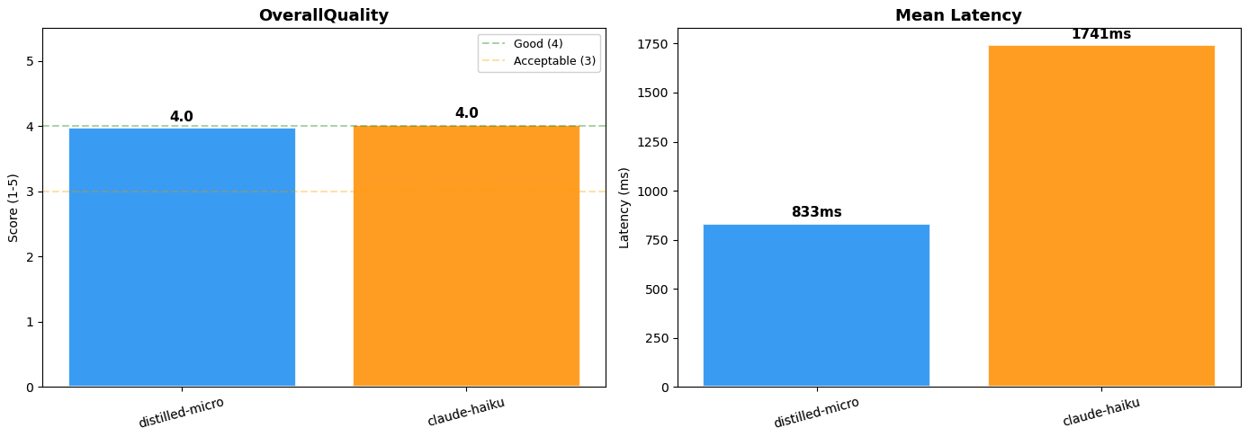 Figure 3: Model performance comparison (Distilled Nova Micro vs. Claude 4.5 Haiku)