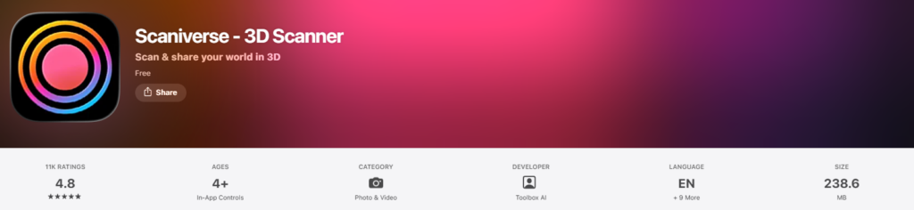 Download: Get the official Scaniverse app for free from the Apple App Store